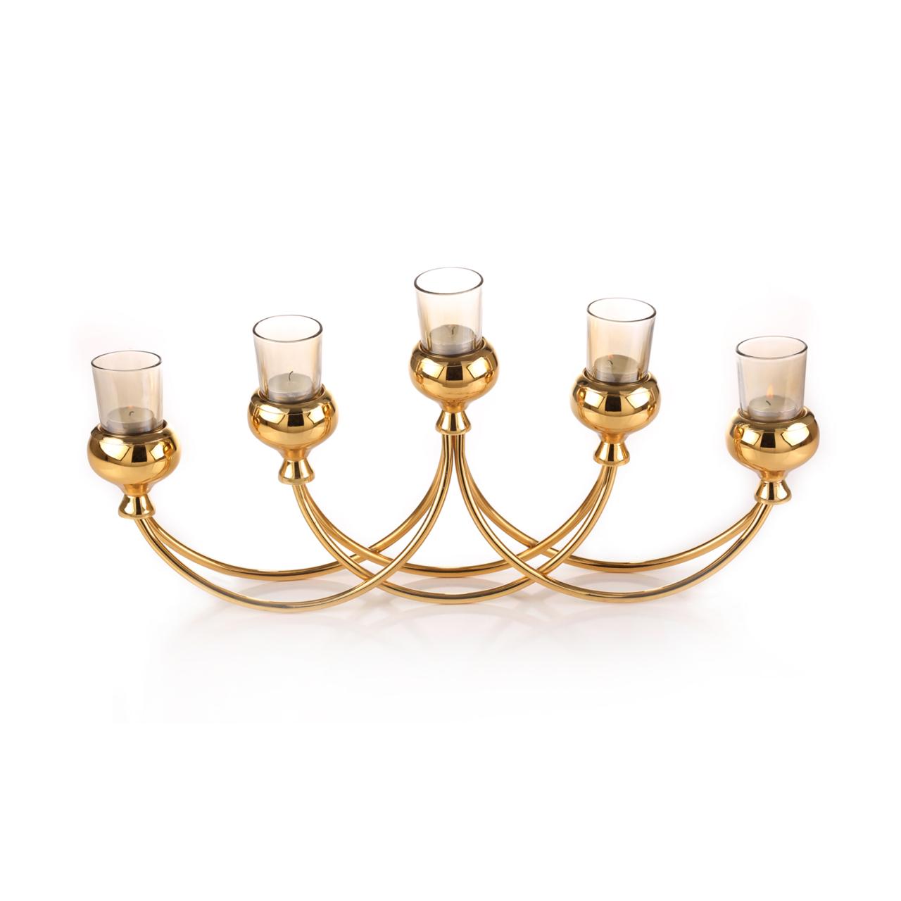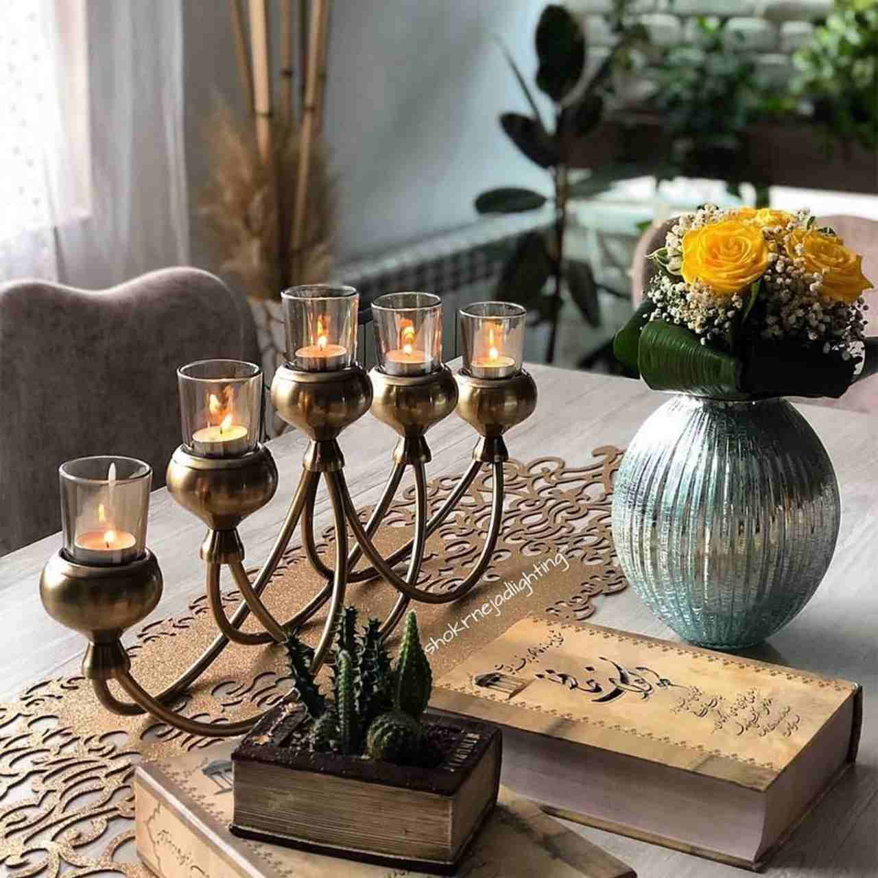 شمعدان رومیزی 5 شعله کد 304 با طراحی زیبا و مدرن، انتخابی ایدهآل برای هر فضایی است. بدنه آهنی آن با روکش آبکاری الکتروفورتیک باعث شده تا علاوه بر زیبایی، از دوام و استحکام بالایی برخوردار باشد. این روکش، از زنگزدگی و خرابی رنگ جلوگیری میکند و محصول را برای استفاده طولانی مدت مناسب میسازد.