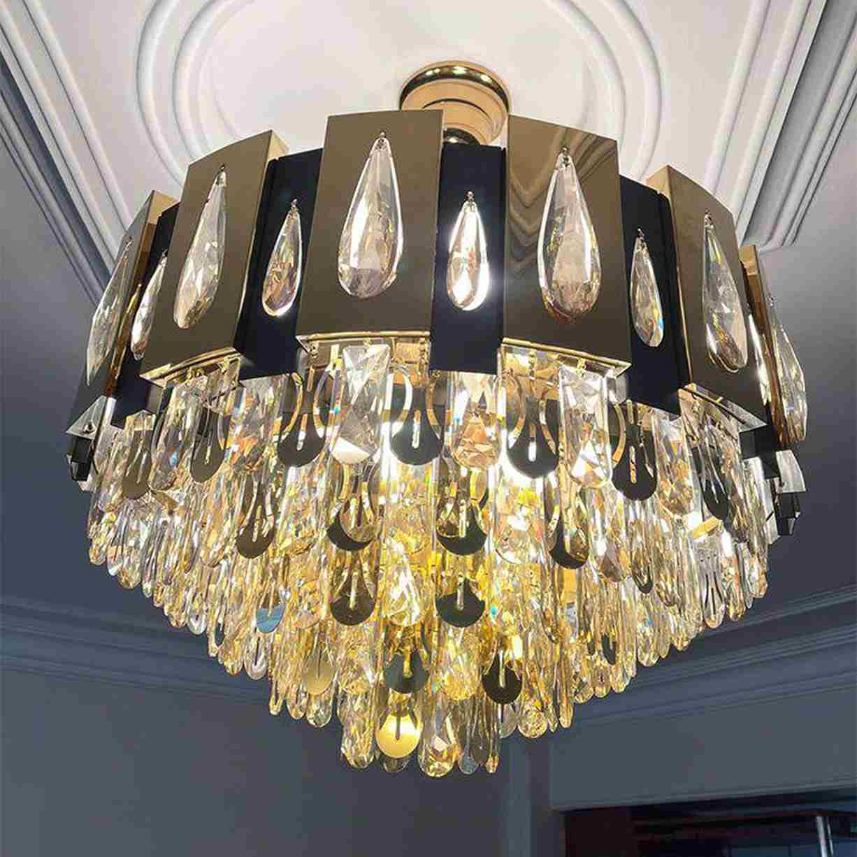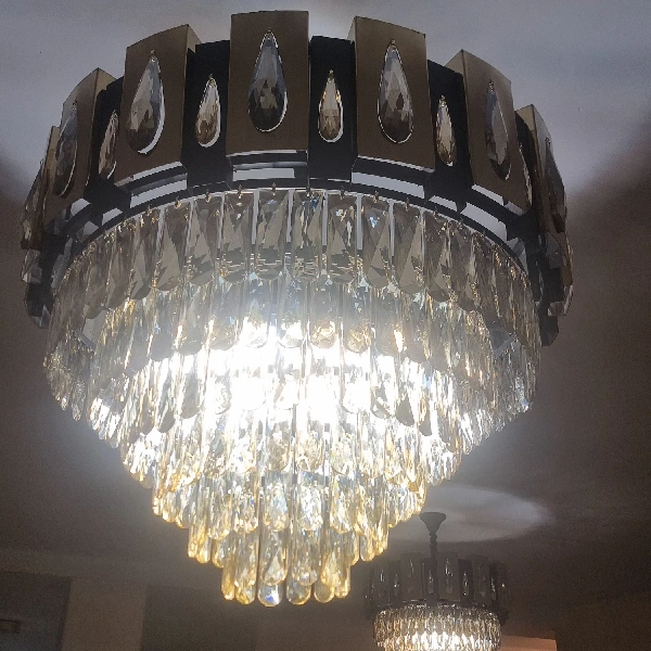 لوستر مدرن کریستالی کد 450 با طراحی چشمنواز و ساختاری حرفهای، گزینهای مناسب برای فضاهای لوکس و امروزی است. بدنه این محصول از ترکیب کریستالهای باکیفیت و استیل با روکش آبکاری الکترو فورتیک ساخته شده که دوام بالا، زیبایی ظاهری و مقاومت در برابر آسیبهای محیطی را در کنار هم فراهم میکند. پوشش رنگ کورهای نیز سطحی یکدست و ضد زنگ ایجاد کرده که جلوهای شفاف و شیک به محصول میبخشد.